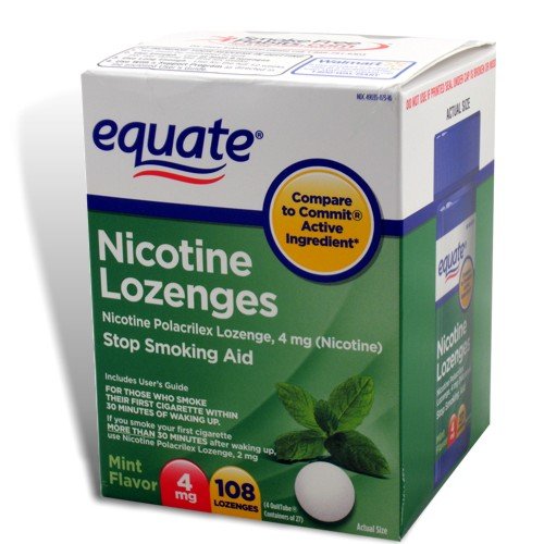 Equate - Nicotine Lozenge 4 mg, Stop Smoking Aid, Mint Flavor, 108 Lozenges