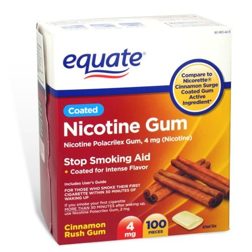 Equate - Nicotine Gum 4 mg, Coated, Cinnamon Rush Flavor, 100 Pieces