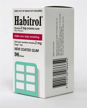 3 boxes Habitrol Nicotine Gum, 2mg MINT flavor COATED gum. 288 Pieces